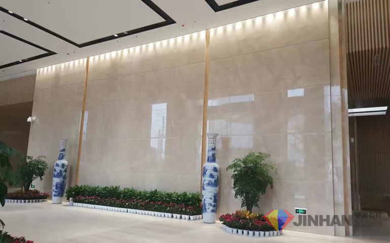 Jinhan Chanel Beige are available in different size subject to materials, most are 260cm up x 140cm up. This material not just with very good price, but also with popular texture and veins. For a natural marble stone, this material has popular in market for long time. In addition, there with many famous marble indoor projects used this material too. For example, some hotel floor marble tiles, wall tiles, and bar marble reception table tops,etc.
